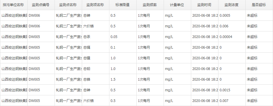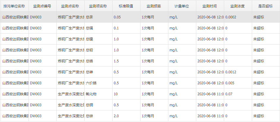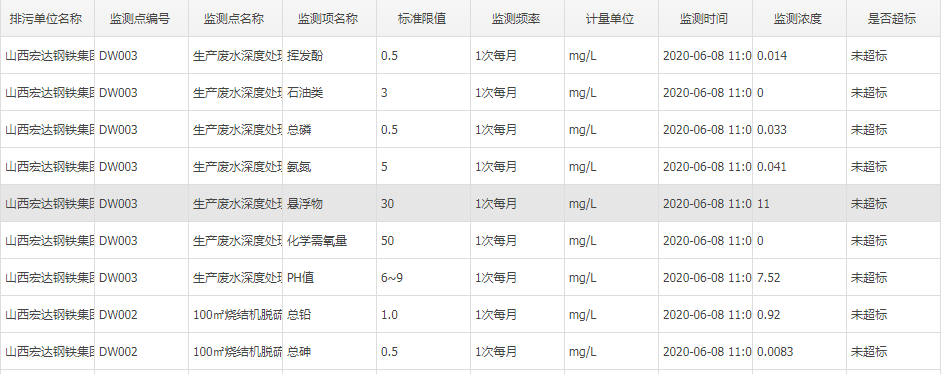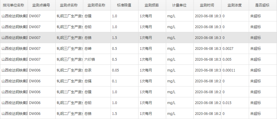2020年六月份自行监测数据